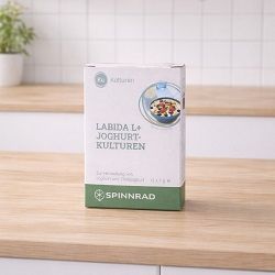 Die LaBiDa L+ Joghurtkulturen von Spinnrad sind ein hochwertiges Ferment zur einfachen Herstellung von Joghurt und Trinkjoghurt zuhause. Sie enthalten rechtsdrehende L+ Milchsäurekulturen und eignen sich auch für pflanzliche Alternativen. Damit gelingen cremige, bekömmliche Joghurtspeisen ohne zusätzliche Zusätze. Sie benötigen lediglich 8 Stunden Fermentationszeit und können mehrere Male zum Weiterimpfen verwendet werden.