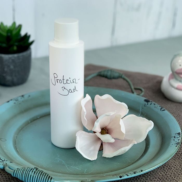 - Zum Schluss konservieren und das Proteinschaumbad in das vorgesehene, mit Alkohol gereinigte Gefäß füllen.