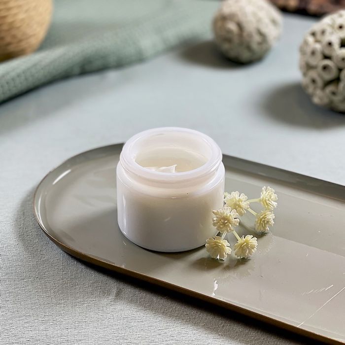 - Creme im Cremaba Tiegel lassen oder in einen Tiegel nach Wunsch umfüllen.