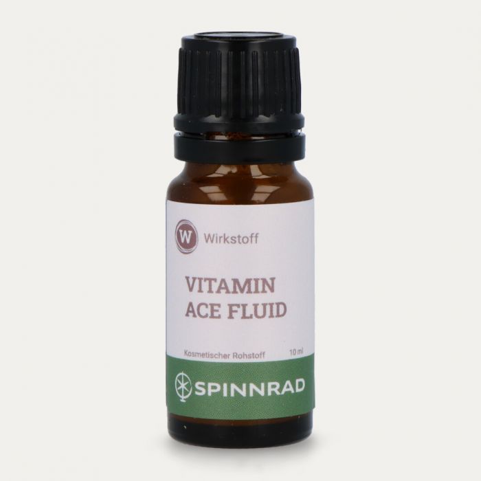 Bestelle jetzt unser hochwertiges Vitamin ACE-Fluid online bei Spinnrad® und schütze deine Haut vor lichtbedingter Hautalterung. Ergänze deine Lieblingsprodukte mit ein paar Tropfen für eine noch bessere Pflegewirkung oder arbeite das Fluid in deine selbstgemachte Pflegekosmetik ein. Alles, was du zum Selbstanrühren brauchst, von Rohstoffen über Zubehör bis hin zu Verpackung, findest du natürlich bei uns!