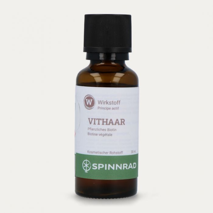 Vithaar ist ein pflanzlicher Spezialextrakt zur Haar- und Körperpflege aus verschiedenen Aminosäuren aus Reis- und Weizenprotein sowie Biotin.