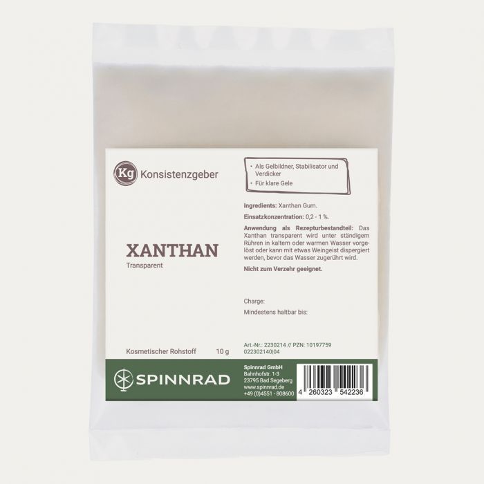 Xanthan transparent ist ein Gelbildner und Dickungsmittel/Stabilisator, das von natürlichen Mikroorganismen (Xanthomonas compestis) produziert wird.