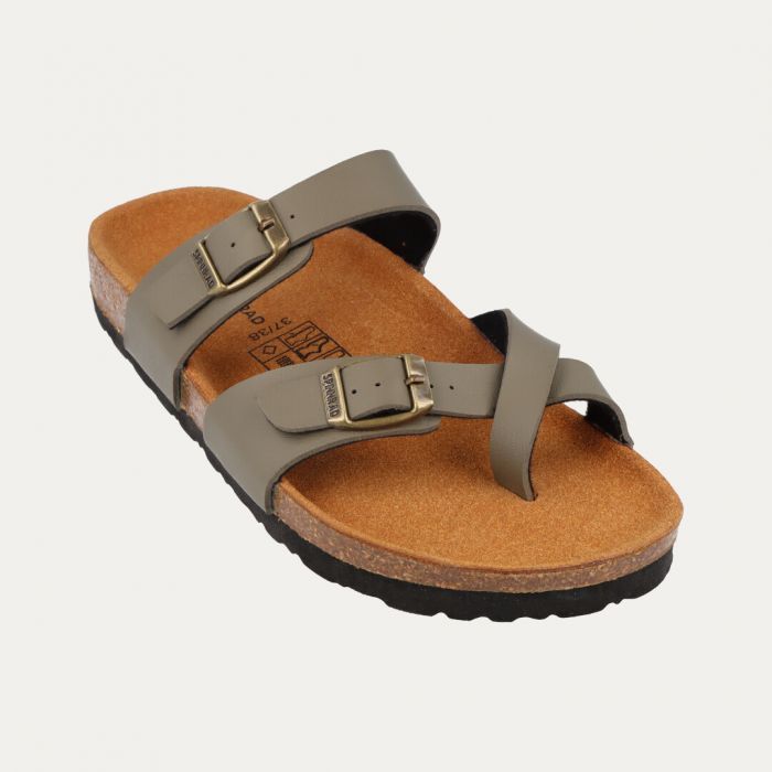 Zimt-Kork Latschen mit Zehenschlaufe aus Kunstleder, Schlamm